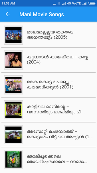 Kalabhavan Mani Songs är en gratis musikapp för Android som hyllar den mångsidiga sydindiska skådespelaren och sångaren Kalabhavan Mani. Appen erbjuder ett omfattande bibliotek med hans mest populära låtar, inklusive film- och andliga sånger. Användare kan enkelt navigera genom olika kategorier som Manichettante nadan Pattukal, Kalabhavan Manis film- och hitalåtar, samt karaokeversioner av hans låtar. Med över 200 filmer i sin karriär och en unik stil, fångar appen essensen av hans musikaliska arv. Appen är designad för att ge en smidig och underhållande upplevelse för fans av Kalabhavan Mani, och erbjuder ett enkelt gränssnitt för att njuta av hans musik när som helst. Med ett varierat utbud av låtar finns det något för alla som uppskattar hans konst.